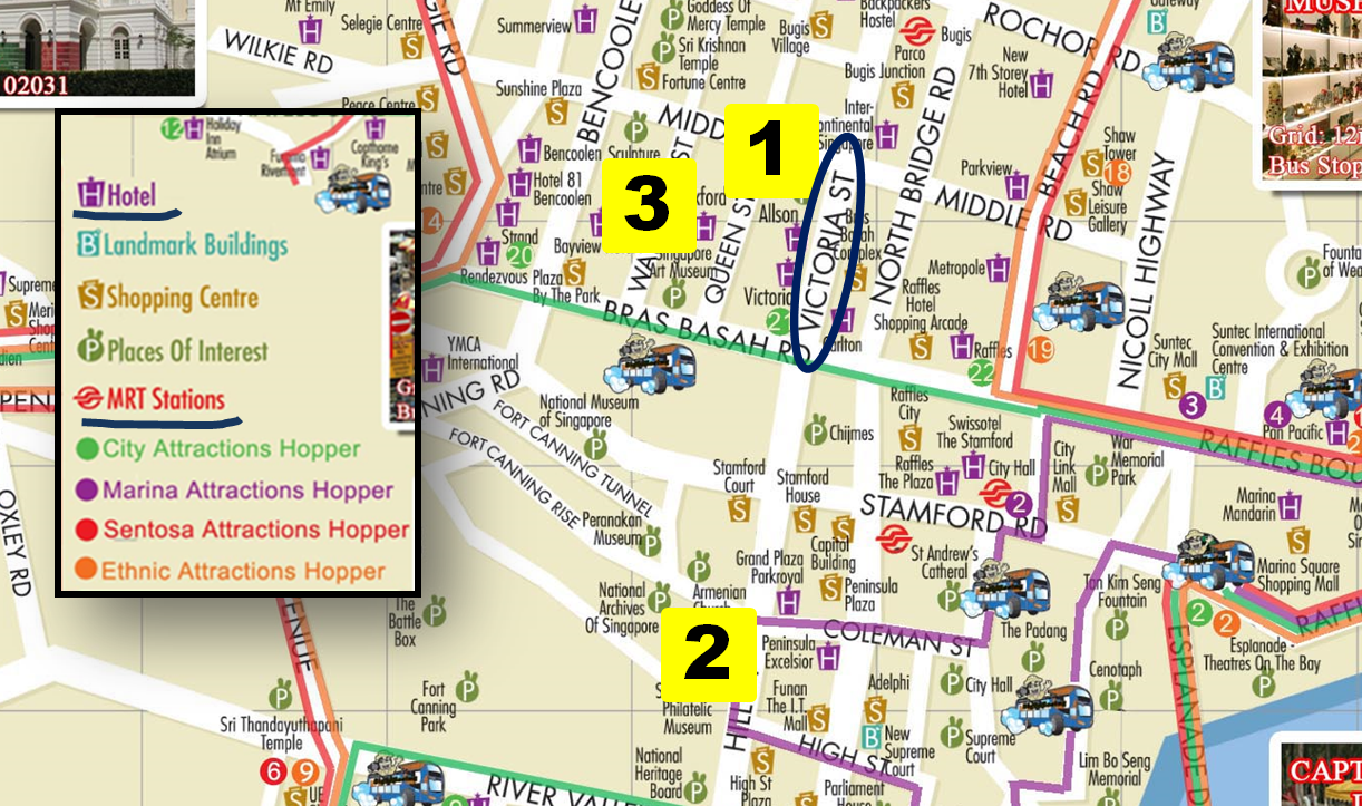 下面地圖是新加坡的重點觀光區部分,其中著名的 克拉瑪頭 (Clarke Quay)、萊佛士坊、魚尾獅公園 (Merlion Park)...